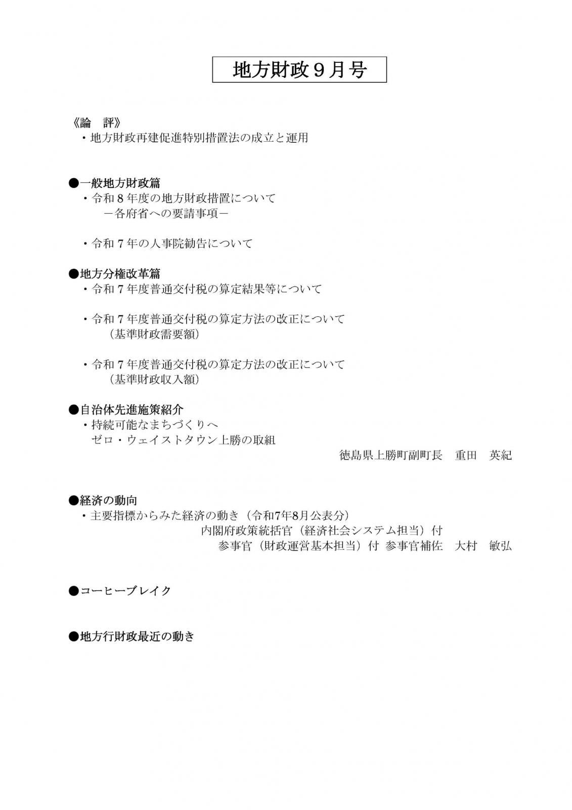 月刊『地方財政』 令和7年9月号(第64巻第9号)