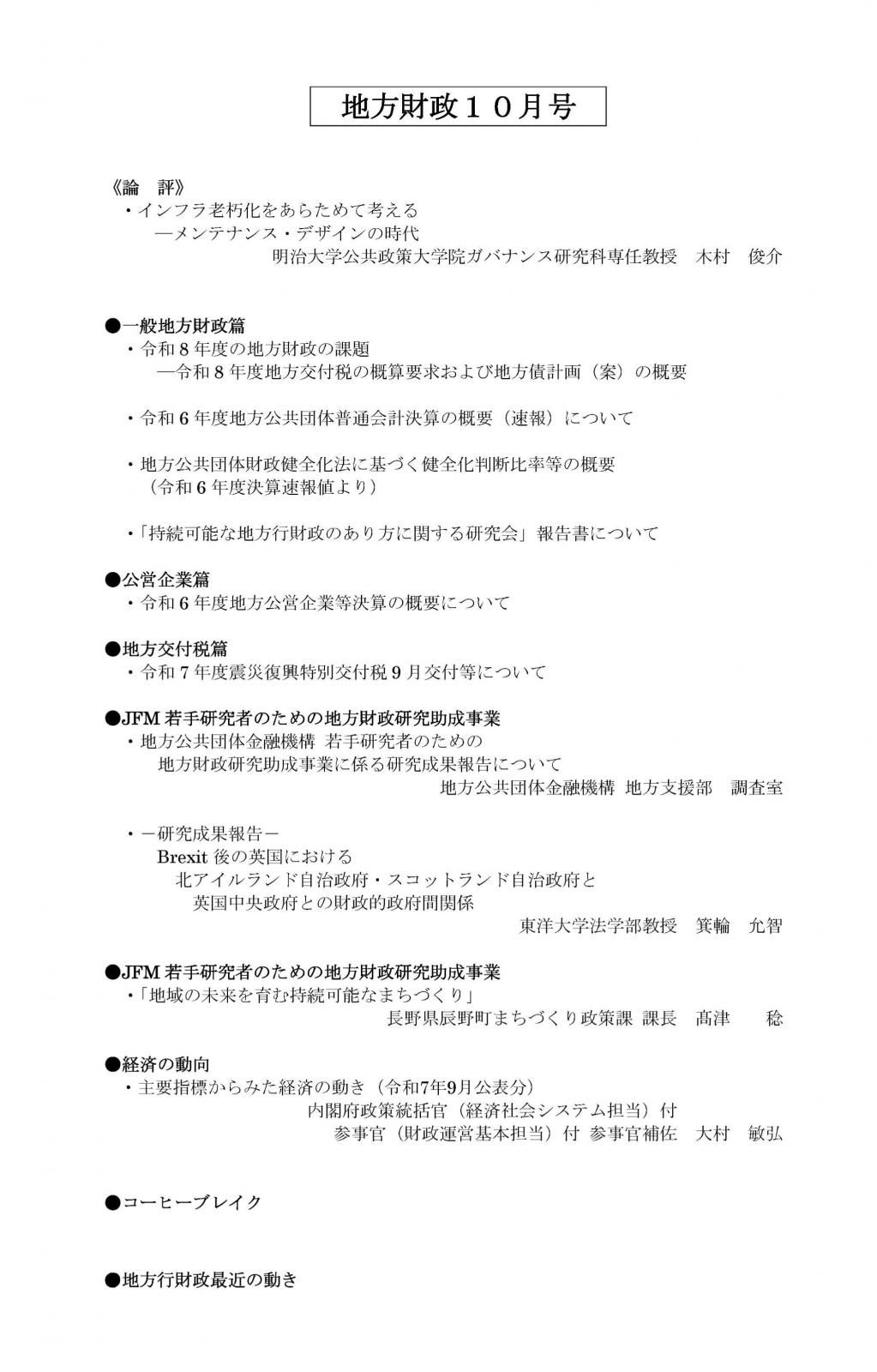 月刊『地方財政』 令和7年10月号(第64巻第10号)